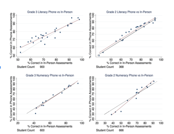 Our hypothesis is that assessing children over a phone call on a sample basis can provide an alternative source to triangulate the data reported by the system and, thereby, improve its reliability. But first, this requires us to check whether phone based data can generate valid and reliable estimates of student learning at all!