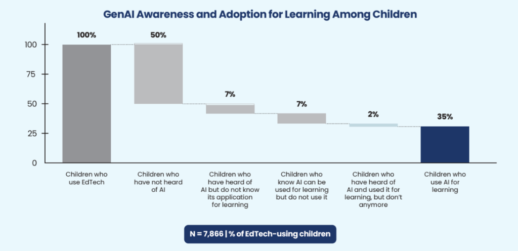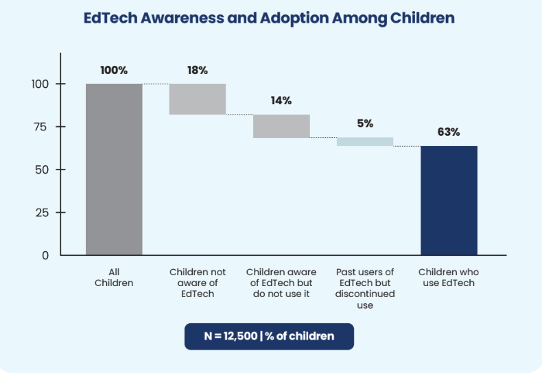Overall, 63% of children and 87% of teachers report using EdTech, with more than half of them using it daily.