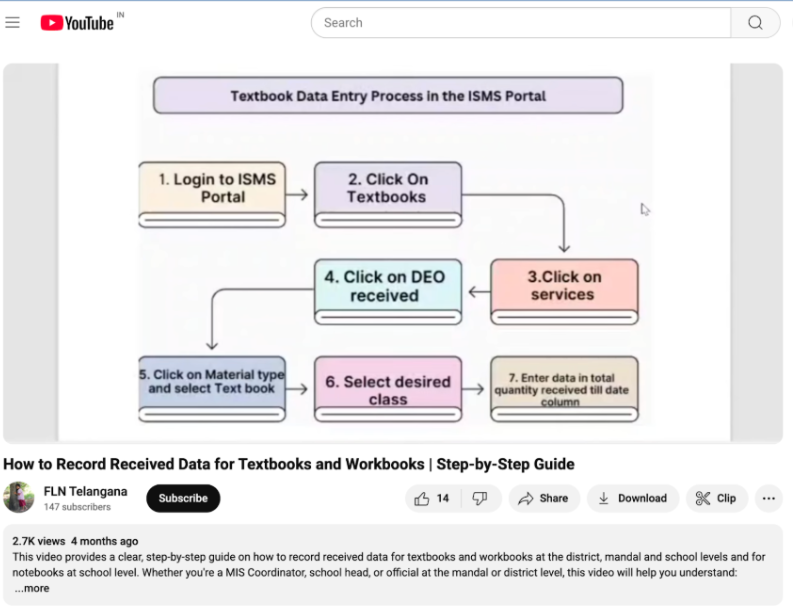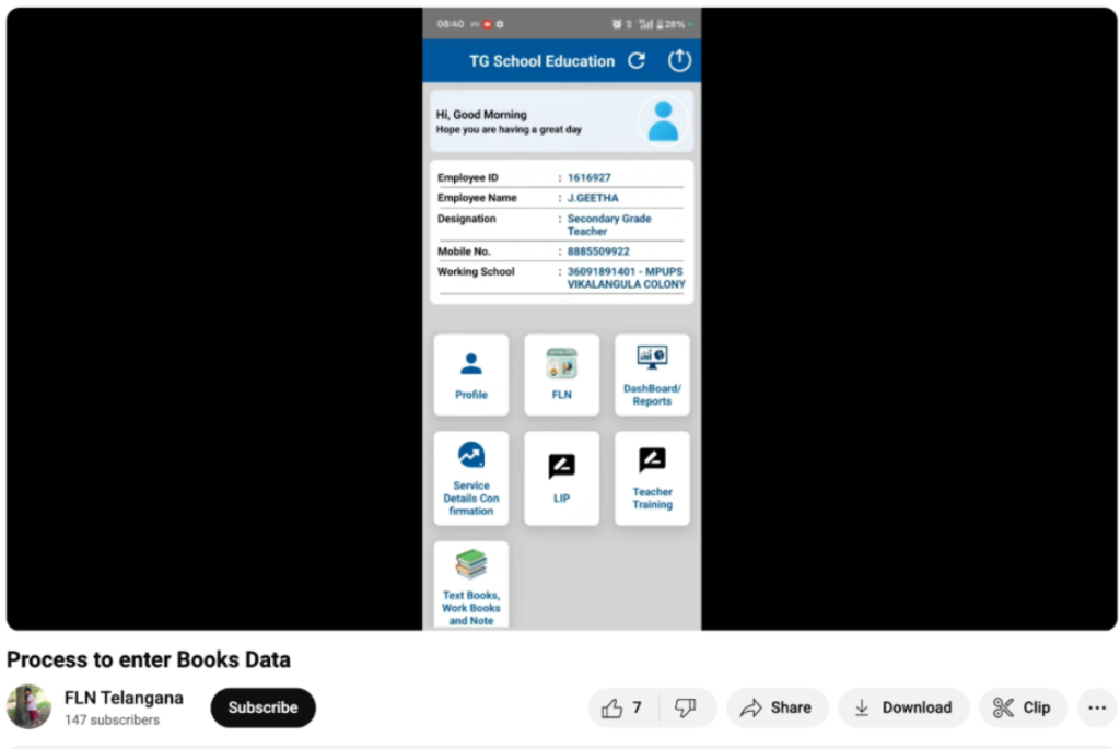 - Another set of videos demonstrated how teachers could enter ‘books received by students’ into the Telangana School Education App.